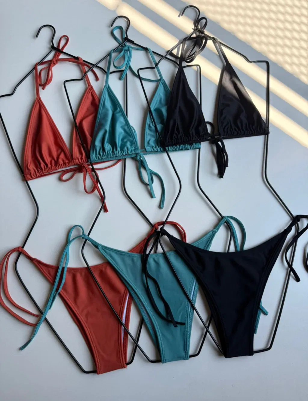 Set de bikini corpiño triangulito clasico con tiras para atar el cuello y espalda. Vedetina clasica para atar .